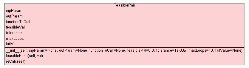 A FeasiblePair is a paired InputParam and OutputParam where the val property of the InputParam is found such that the val property of the OutputParam is equal to the desired feasibleVal for the mathematical model under consideration (i.e. as modeled by the function call, functionToCall).